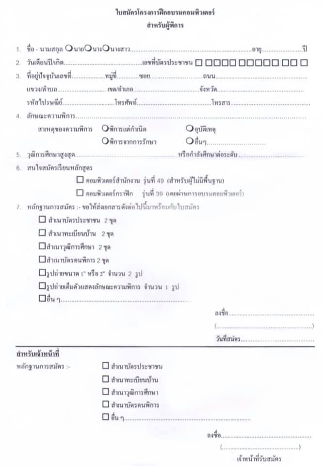 มูลนิธิส่งเสริมและพัฒนาคนพิการ รับสมัครคนพิการเข้าฝีกอบรมคอมพิวเตอร์ ประจำปี 2563